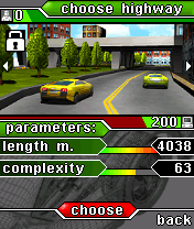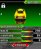 - complete 3D mobile graphic - realistic car movement on dry asphalt - 4 full-fledged rivals with high level of AI - Nitro accelerating!