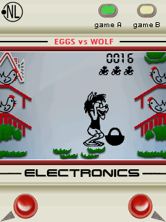 The cartoon wolf became a businessman and opened a poultry farm :) Every time you see a rolling egg – just move the wolf there to put the basket under the roost. The rest will come naturally! :)