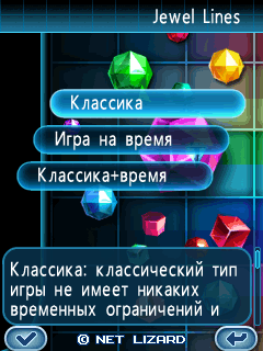 The goal is to gain as many points as possible by making a line of 5 and more jewels of the same color.