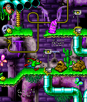 - полностью на русском языке; - 12 уровней; - 10 типа монстров; - великолепнейшая мультипликация и анимация; - изобилие музыки и звуковых эффектов на каждое событие; - самая быстрая, красивая и не тормозящая игра не любых телефонах; - множество сопутствующих артефактов: (телепорты-унитазы, пружинные желе-батуты, скользкие горки, путешествие по сточным трубам, управление фикальными потоками и мн. др.) - немыслимое количество графики: более 180 спрайтов декораций, более 100 спрайтов анимации персонажей; - специально разработанная альтернативная графика, для самых навороченных телефонов, с экраном (240х320)